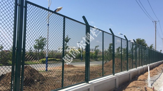 保稅區(qū)圍欄網(wǎng)孔菱形狀,堅(jiān)固美觀,不容易變形。防攀爬性好。表面采用浸塑處理,防銹時(shí)間長,鋼板網(wǎng)圍墻通風(fēng)性能好,安裝方便。